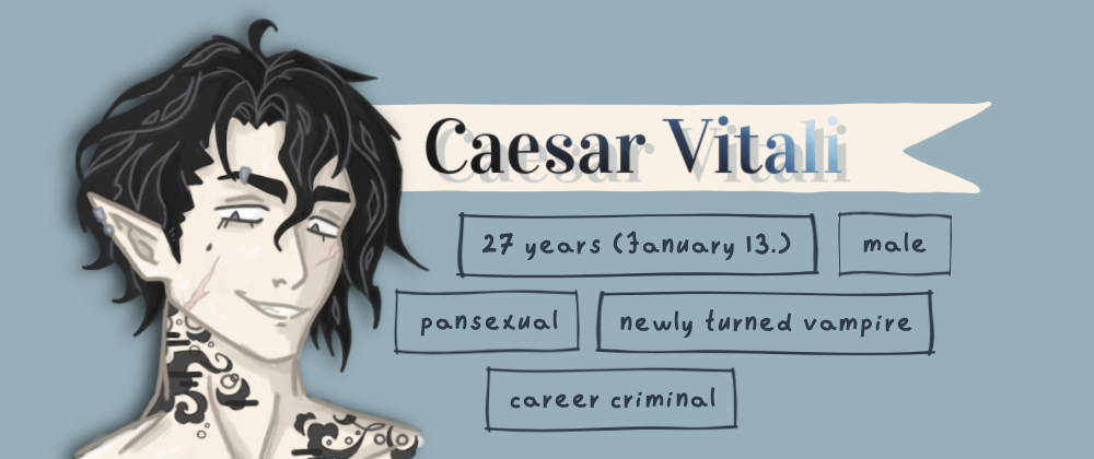 ![]() No one in their right mind would describe Caesar as buff. They would say scrawny if they were being nice about it, otherwise use a word that starts with an f, and ends with getting decked in the face. Having the narrow waist of a courtesan, and the long, elegant fingers of a pianist doesn't help his case either. But one does well not to underestimate Caesar's strength, which is paired with the skill of an experienced street fighter and the confidence of a lunatic. To the detriment of humanity as a whole, Caesar is quite aware of his own attractiveness, often mentioning it in unrelated conversation. His face defaults to a cocky grin so punchable, that it could provoke a nun to a shootout. But these smiles never seem to reach his eyes. His hair is an oily-black mess, perpetually looking like Caesar just got out of the shower. In contrast, Caesar himself is about as pale as one gets. He avoided the sunlight like the plague even before his... unfortunate condition. His skin is crisscrossed by scars, the ones on his face, for instance, are from an incident when his opponent brought a knife to a fistfight. The scars are occasionally intercepted by patches of elaborate ink-patterns; Caesar has tattoos pretty much all over his body: on the side of his neck, on his shoulder, back, both of his arms and even on one leg, starting from his ankle, crawling up to his hip. They are all nonfigurative, with no meaning, he just thinks he looks hot with them, and he is right. He got piercings—two in one ear, one in the other and one in the right eyebrow—for the same reason. |